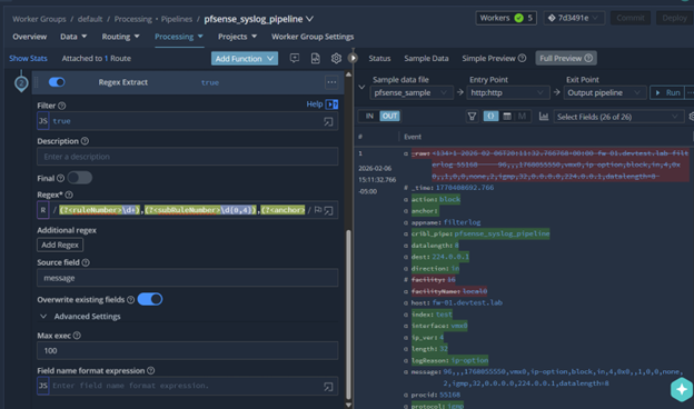 Cribl pipeline Regex Extract function.