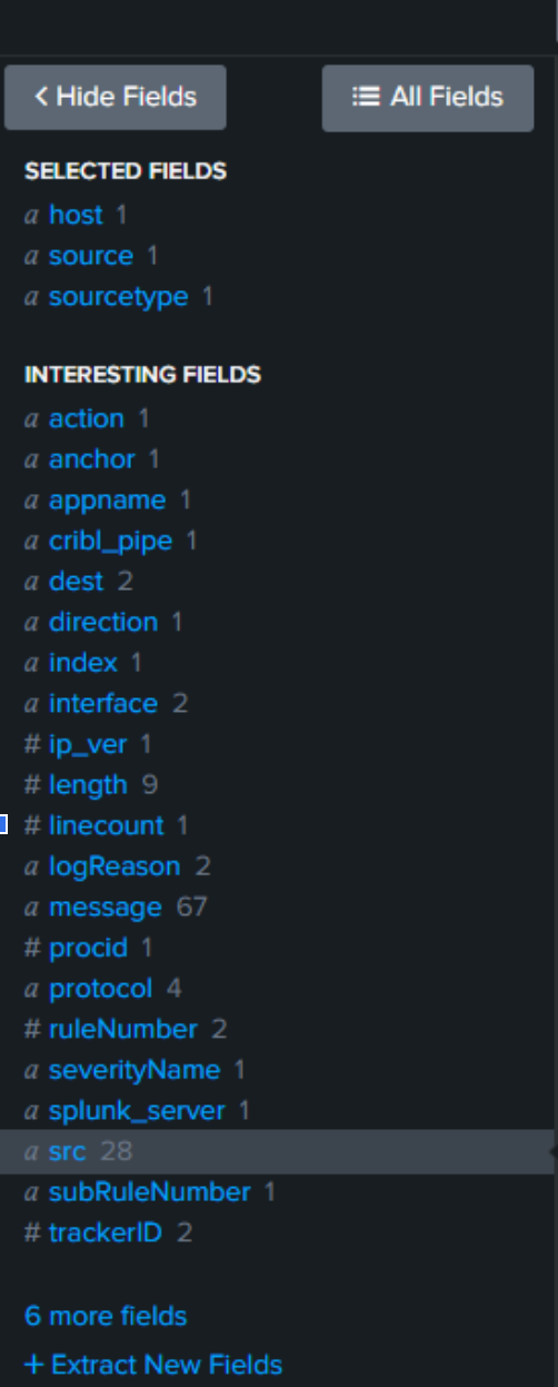 We can now see our extracted fields. Map these to the Common Information Model (CIM) for bonus points.
